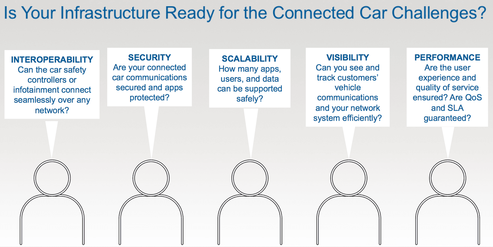 Car occupants will expect the same quality of experience, privacy, and safety that they get with services at home or in the office. This means mobile operators will also need to steer and prioritize traffic according to applications. For example, an E911 call will need to be prioritized over an email download or car telemetry data being transmitted in the network.