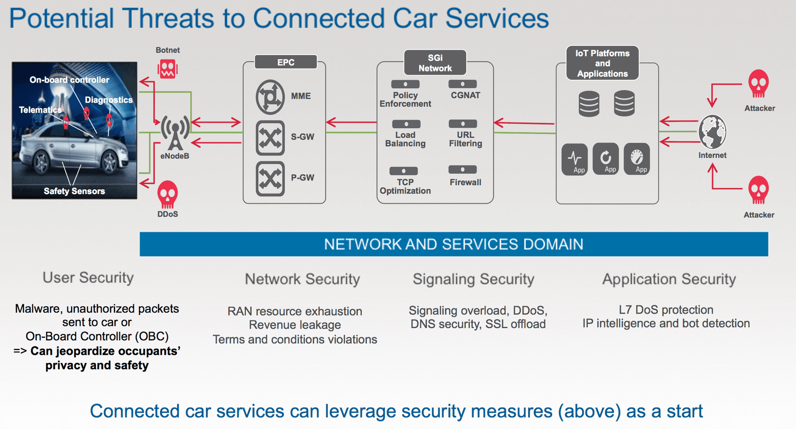 The stakes are high when car occupants’ privacy and safety are in jeopardy, in case an unexpected event or system compromise should occur. Hackers not only can gain access to private data and systems information, they can also take control of connected vehicles and cause sudden movements to the car. Distributed denial-of-service (DDoS) attacks and malicious advanced persistent threats (APTs) could cause accidents and threaten lives.
