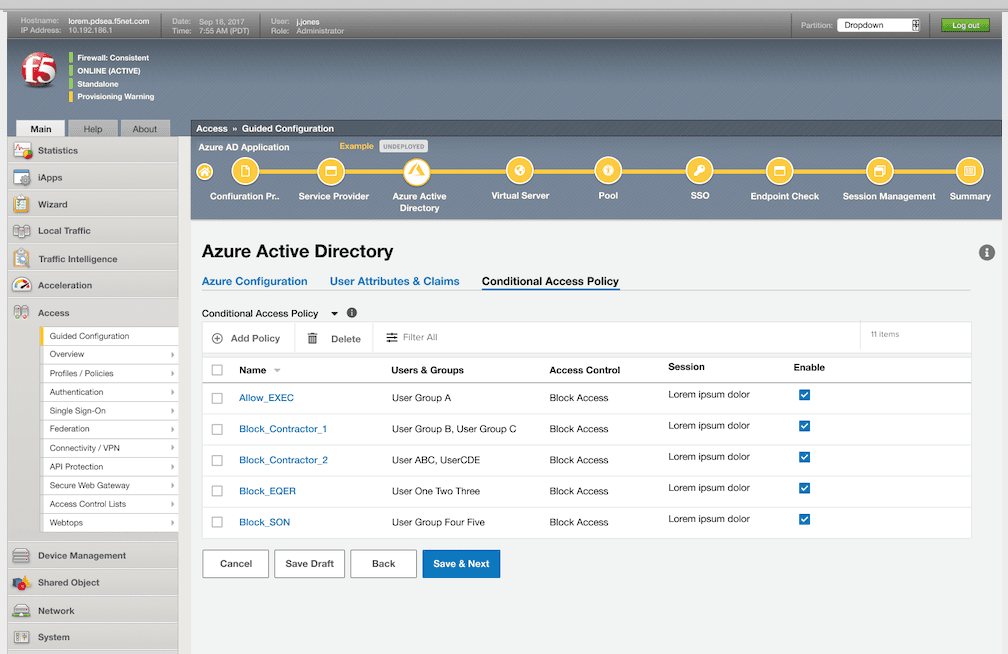 In the next version of F5 BIG-IP APM—scheduled to be released this summer—the Advanced Guided Configuration (AGC) for APM has added the ability for administrators to simply onboard and operationally manage mission-critical applications (such as select SAP and Oracle applications) to Azure AD. The administrator no longer needs to go back and forth between Azure AD and BIG-IP as the end-to-end operation policy management has been integrated directly into the APM AGC console. This deeper integration between BIG-IP APM and Azure AD delivers an automated “easy button” to ensure such mission-critical applications can quickly, easily support identity federation, SSO, and MFA. This seamless integration between BIG-IP APM and Azure AD reduces management overhead, meaning that the integration now also enhances the administrator experience.