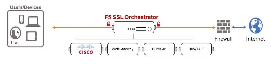 Cisco Firepower NGFW has onboard SSL decryption capabilities but organizations can choose to offload that work to F5 SSL Orchestrator so that all of the considerable horsepower of Cisco Firepower NGFW can be dedicated to protecting their network.
