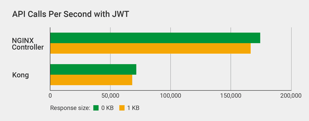 The API Management Module handles more than 2x as many JWT‑authenticated API calls per second as Kong.