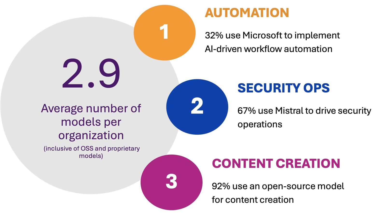 Our most recent research discovered that organizations are, on average, running with almost three different models. The reason behind that choice appears to be driven by use cases.