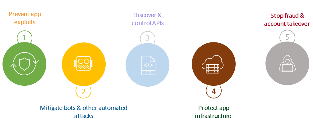 In practice, F5’s products and services help organizations across the world prevent active exploits of their apps. We mitigate bots, the OWASP Top 10, and many other types of attacks. We discover and control APIs. We protect the underlying application infrastructure. And we help stop fraud and malicious takeover of end-customer accounts. In short, we have a breadth of use cases we can help you address and protect.
