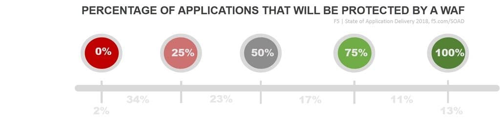 Somewhere in between lie the bulk of organizations, with 34% protecting a quarter or less (1-24%) of their applications. Those apps are likely akin to the Hot Gates. They are the most visible, the ones you promote and advertise. They’re the ones that see the most traffic and are, logically, the most likely route of attack.